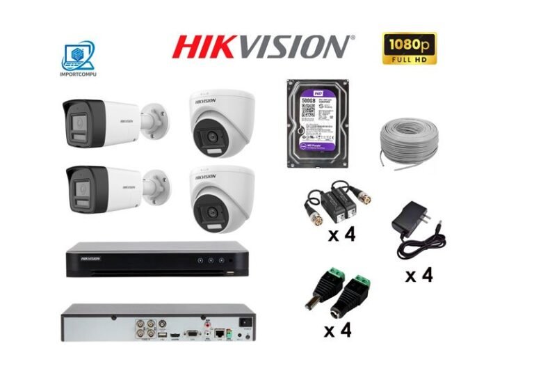 KIT 4 CAMARAS HIKVISION 2MP / 1080P INTERIOR Y EXTERIOR CON AUDIO
