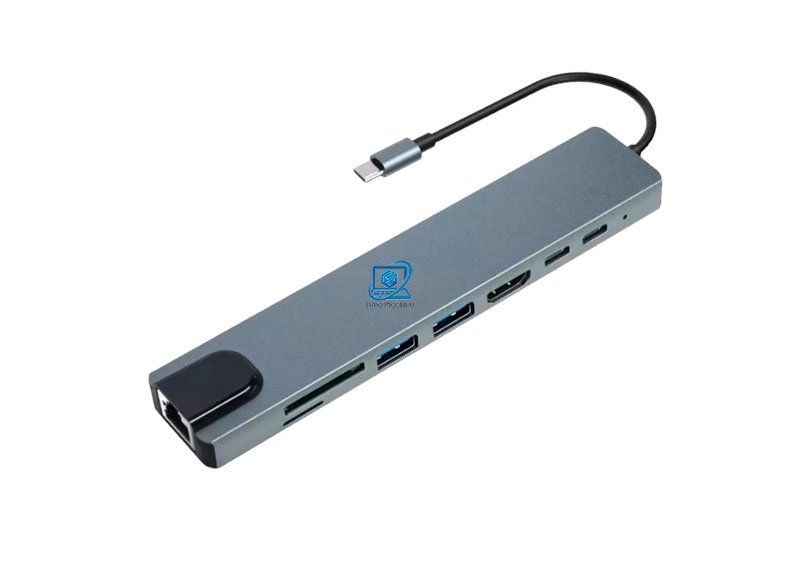 ADAPTADOR HUB 8 EN 1 TIPO C, ETHERNET, HDMI , USB, SD, TD